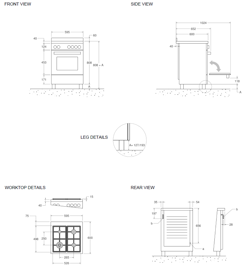 60X60εκ. - 4 εστίες αερίου - φούρνος ηλεκτρικός