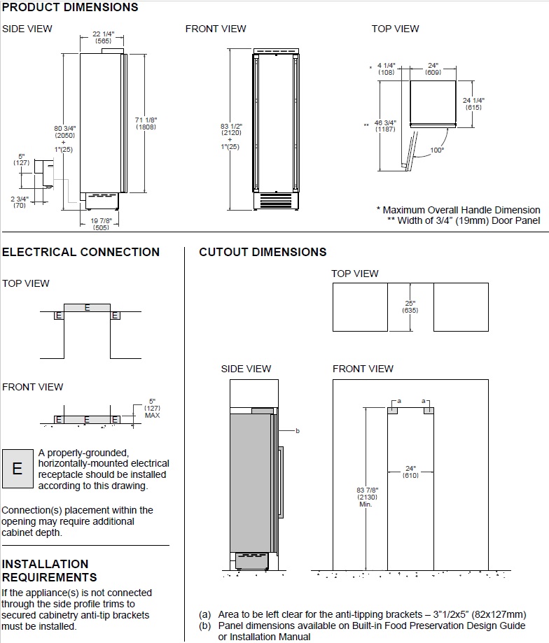 Διαστάσεις εντοιχισμού (ΥxΠxB) 213,0 (ελάχ.) x 61,0 x 63,5 εκ. το πάνελ επιλογής σας θα πρέπει να έχει μέγιστο βάρος 34 κιλά και πάχος 19-28χιλ.