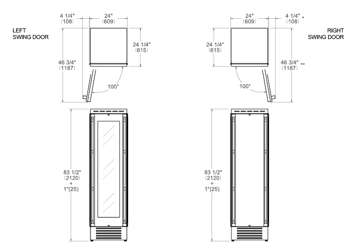 Διαστάσεις συσκευής (ΥxΠxΒ) - Βάθος με ανοιχτή πόρτα 212,0 x 60,9 x 61,5 - 118,7εκ.