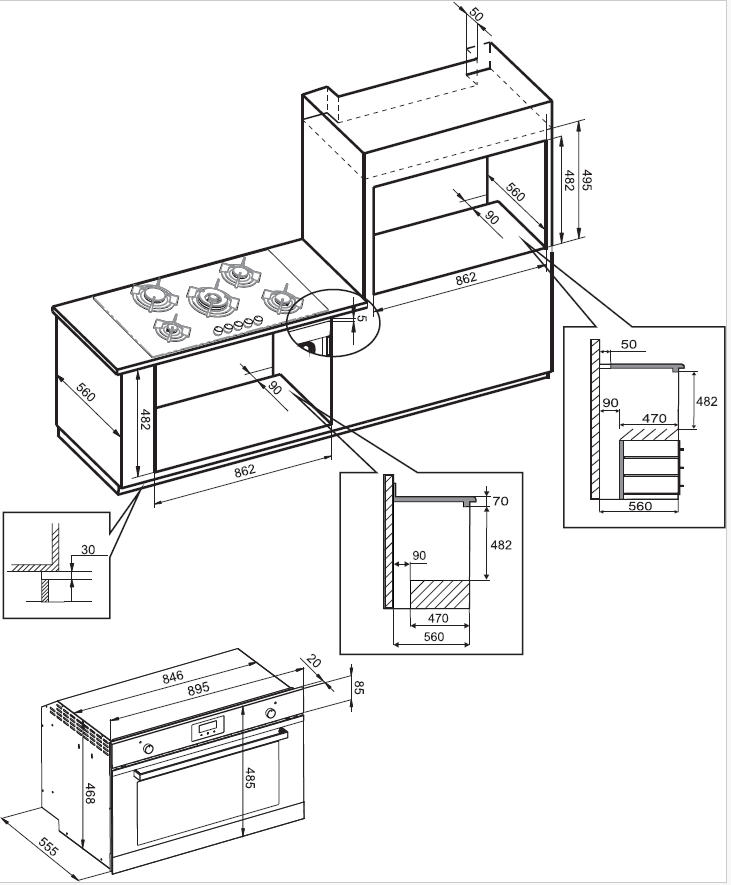 | Διαστάσεις εντοιχισμού (ΠxYxB) | 86,2 x 48,2 x 56,0-58,0 εκ. |